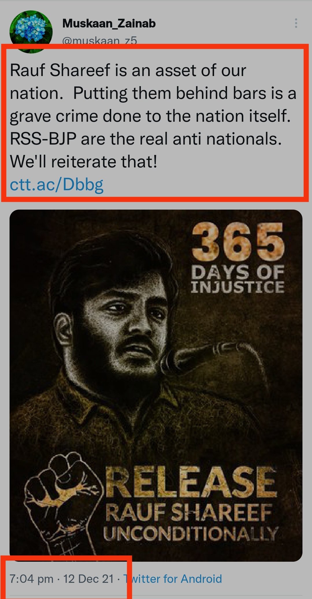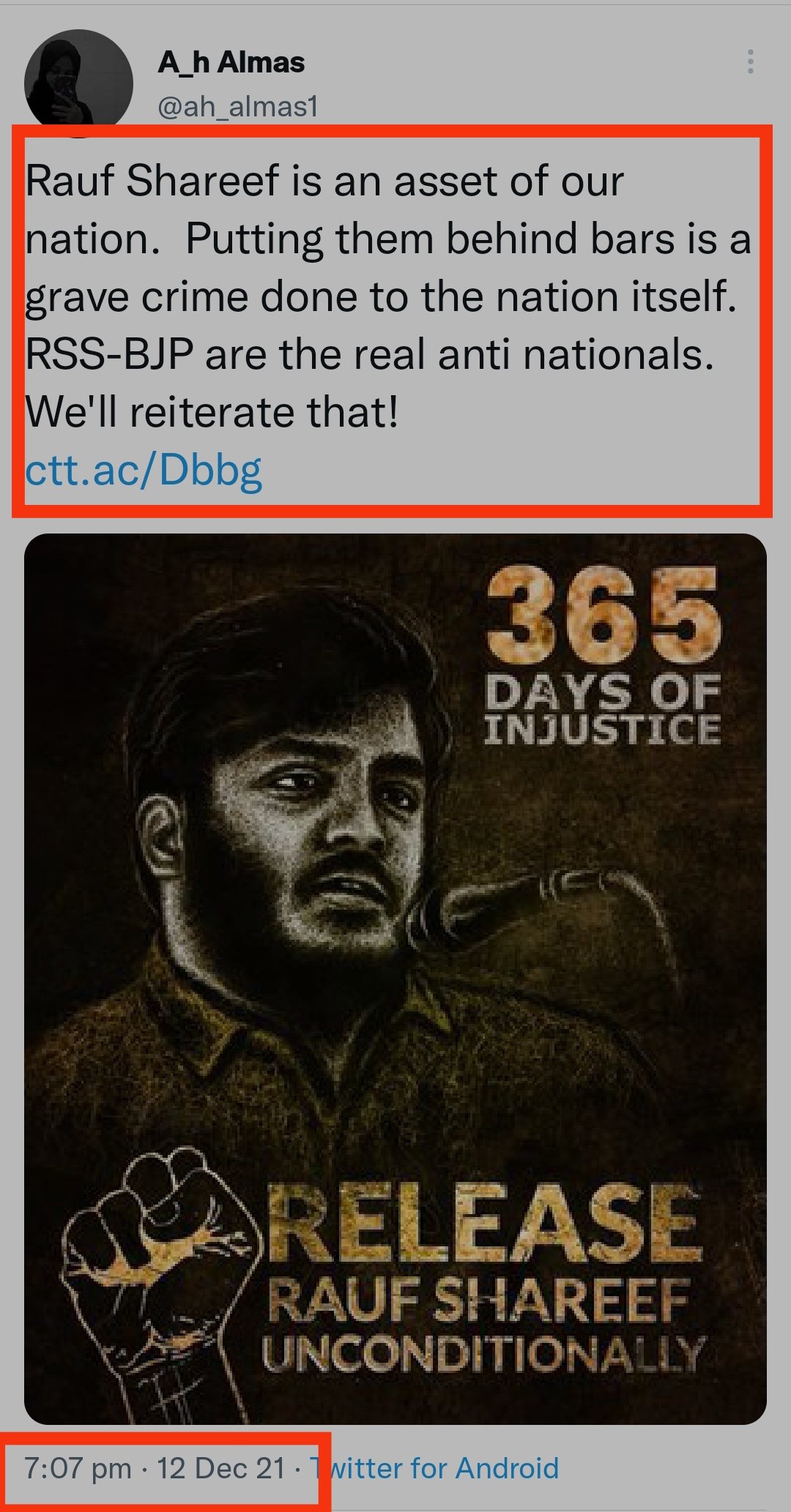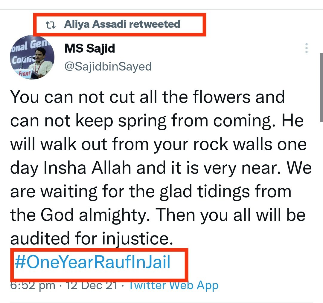 16. Next hashtag of CFI was started on 12th December 2021 to support arrested criminal Rauf Shareef.