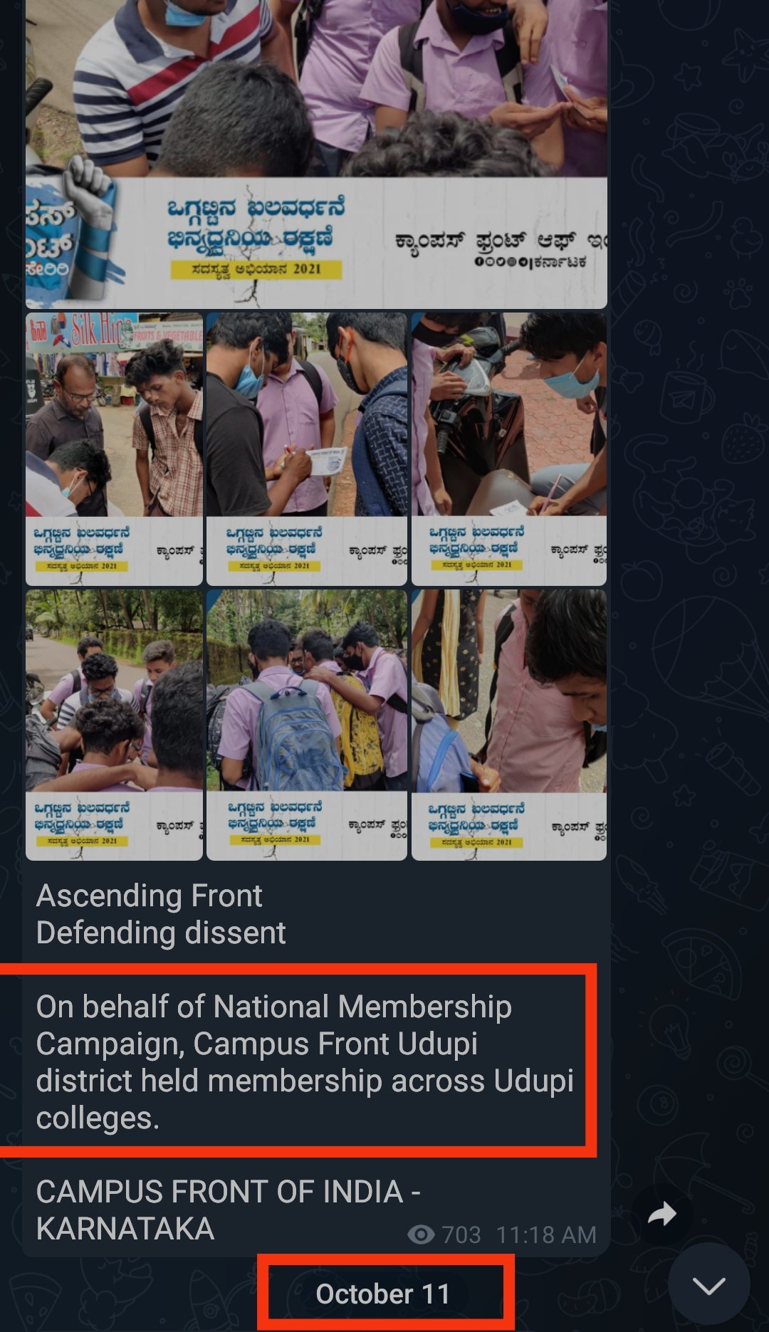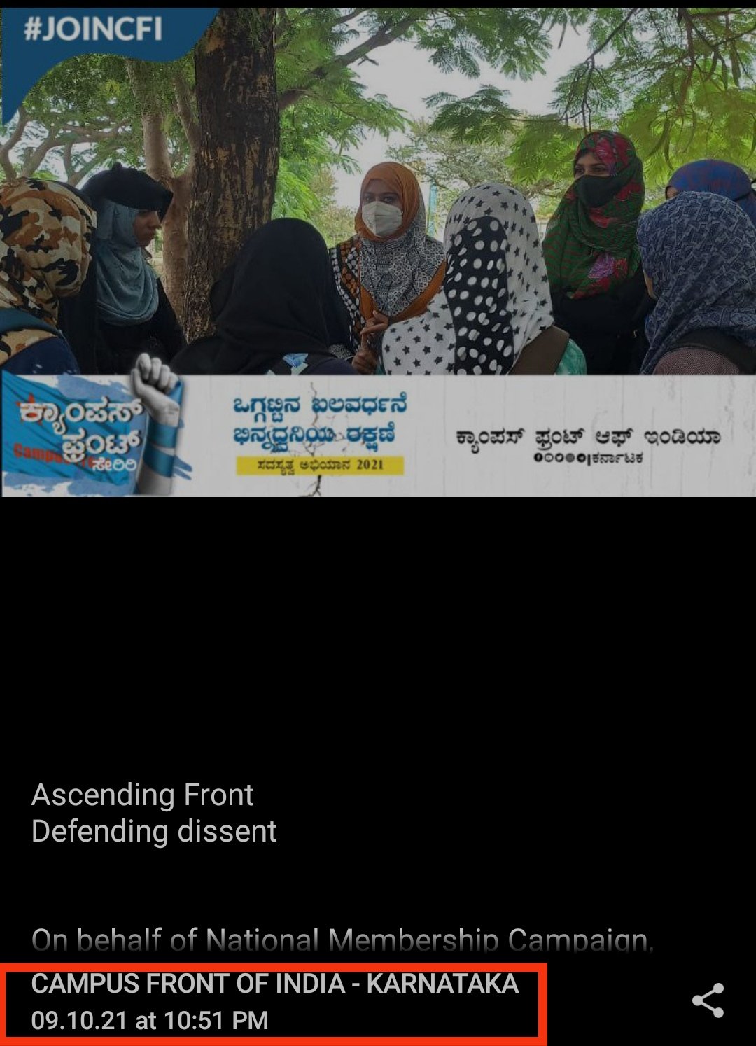 2. Early in September 2021, a radical and criminal student group Campus front of India(CFI) has started its membership drive in colleges including Udupi.
