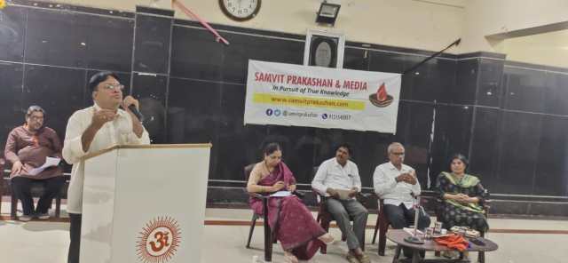 The translator of the book, Smt Hemalatha in her talk, explained in detail, on how the original author Sri Gajanan Mahandale, placed all facts on the table after in-depth research.